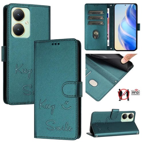 Funda de Cuero Rfid con Relieve Global Smile para Vivo Y27 4G 2023 (Verde Pavo Real)
