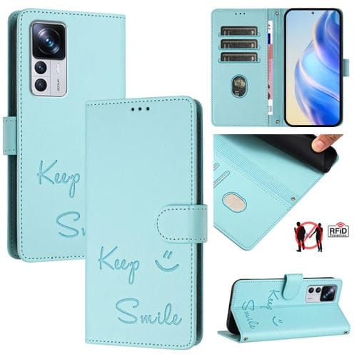 Funda de Cuero Rfid con Relieve Smile para Redmi K50 Ultra (Verde Menta)