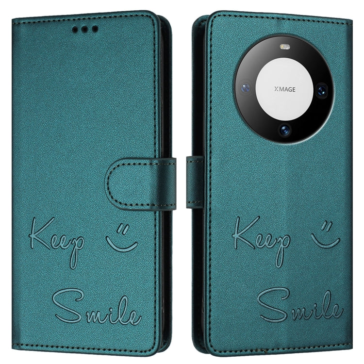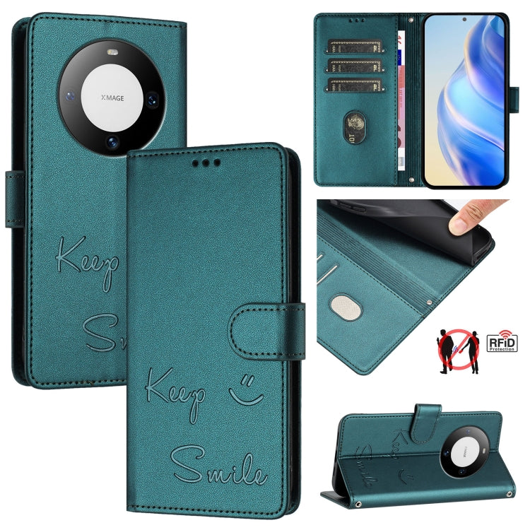 Funda de Cuero Rfid con Relieve Sonriente para Huawei Mate 60 (Verde Pavo Real)