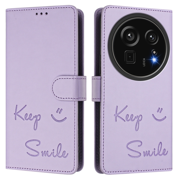 Funda de Cuero Rfid con Relieve Sonriente para Sharp Aquos R9 Pro (Morado Claro)