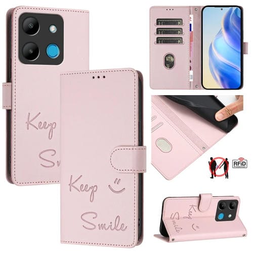 Funda de Cuero Rfid con Relieve Sonriente para Teléfono Infinix Smart 7 X6515 (Rosa)