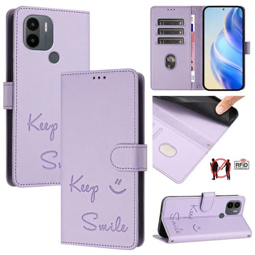 Funda de Cuero Rfid con Relieve Sonriente para Xiaomi Poco C51/C50 (Morado Claro)