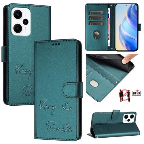 Funda de Cuero Rfid con Relieve Sonriente para Xiaomi Poco X4 Gt (Verde Pavo Real)