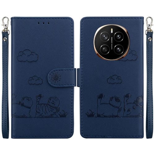 Funda de Cuero Rfid con Diseño de Gatos para Honor Magic7 (Azul)