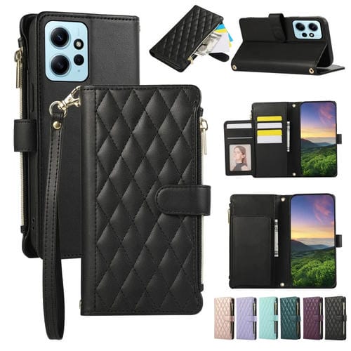 Funda de Cuero Tipo Billetera con Cremallera Rombal Global para Redmi Note 12 4G (Negra)