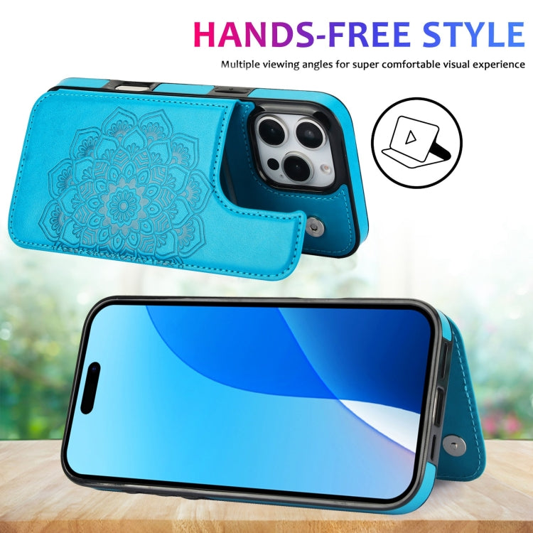 Funda Tipo Billetera Cuero Doble Hebilla Diseño Mandala iPhone 16 Pro (Azul)