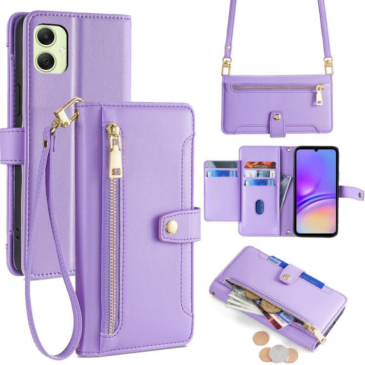 Funda de cuero tipo cartera con cremallera y textura de oveja para Samsung Galaxy A05 4G (morado)