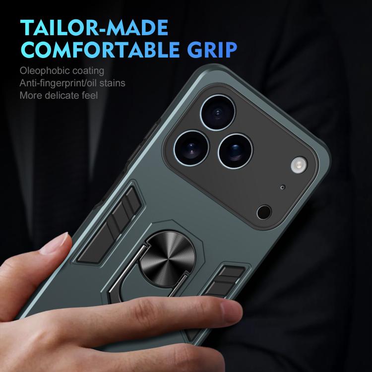 Funda de metal con anillo a prueba de golpes para iPhone 17 Pro (verde)