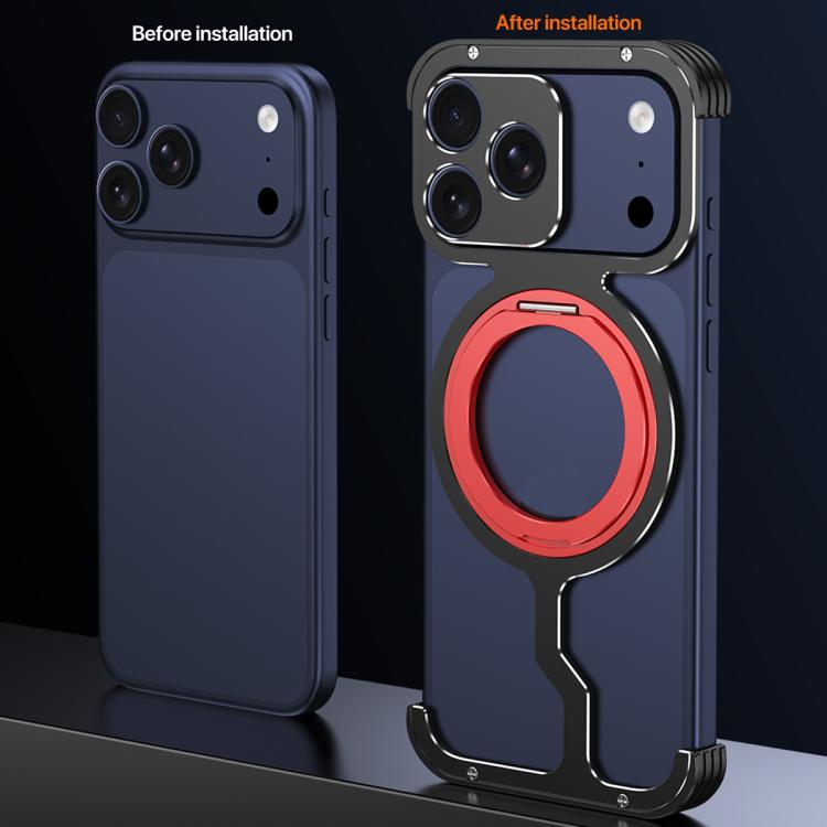 Funda de metal con disipación de calor y soporte magnético MagSafe sin marco para iPhone 17 Pro (plateada y negra)