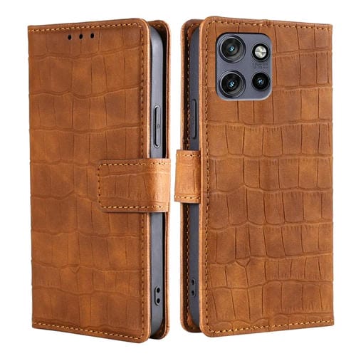 Funda de Piel con Cierre Magnético y Diseño de Cocodrilo para Motorola Edge 50 Neo 5G (Marrón)