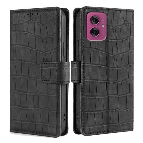 Funda de Piel Motorola Moto G55 5G con Cierre Magnético y Diseño Cocodrilo (Negra)