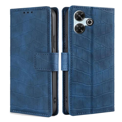 Funda de Piel con Cierre Magnético y Diseño de Cocodrilo para Redmi 13 4G (Azul)