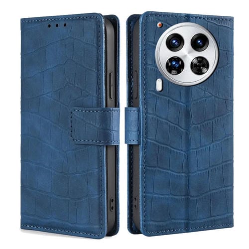 Funda de Piel para Tecno Camon 30 Premier 5G con Cierre Magnético y Diseño de Cocodrilo (Azul)