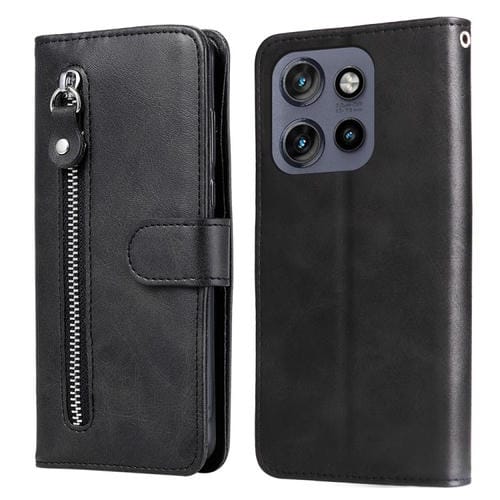 Funda de Piel con Cremallera y Textura de Becerro para Motorola Edge 50 Neo Thinkphone 25 (Negra)