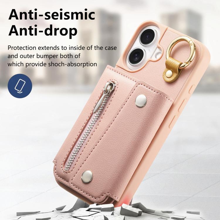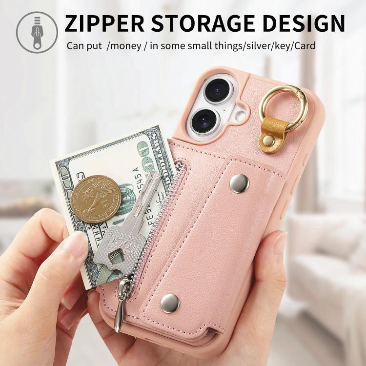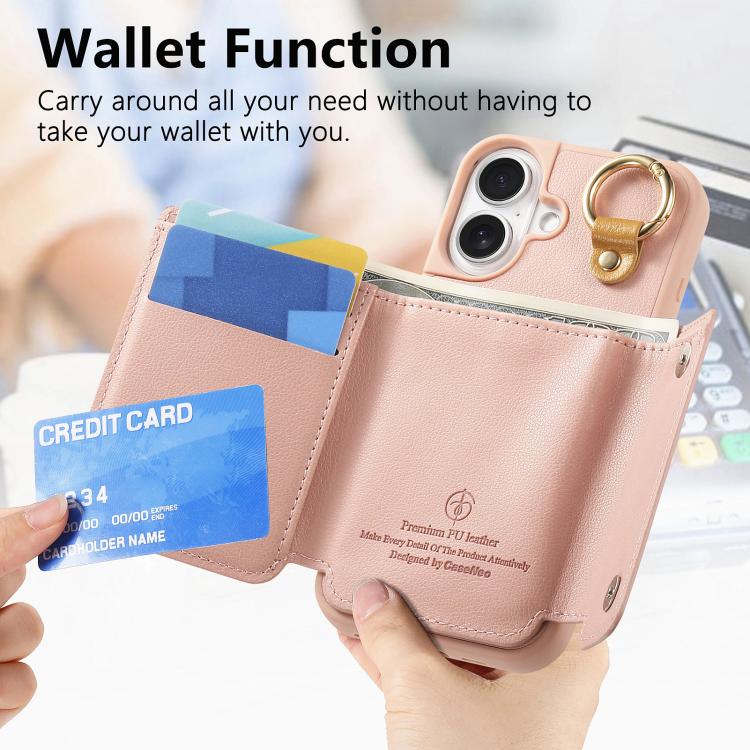 Funda de piel con hebilla en forma de D para iPhone 17 (rosa)
