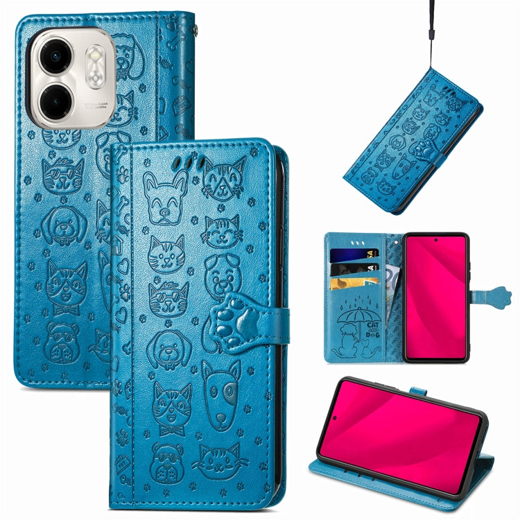 Funda de Piel con Relieve de Gato y Perro para Infinix Smart 9 (Azul)