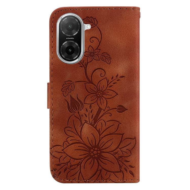Funda de piel con relieve de lirio para Redmi A5 4G (171,7 mm, marrón)