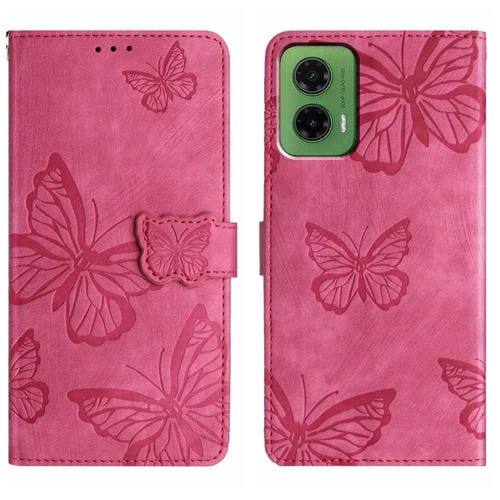 Funda de Piel con Relieve de Mariposa para Motorola Moto G35 (Rosa Rojo)
