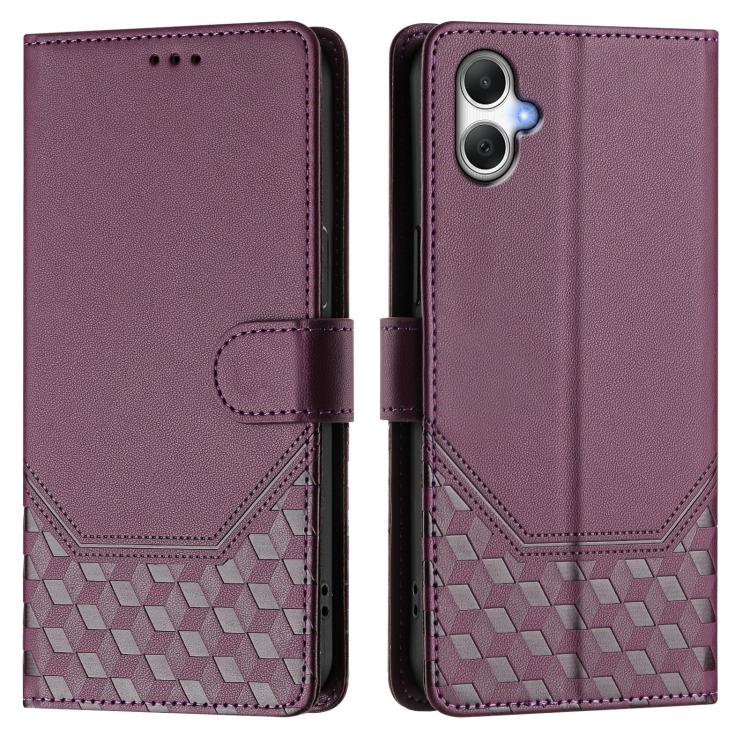 Funda de piel con relieve de panal RFID para Samsung Galaxy A07 4G (violeta)