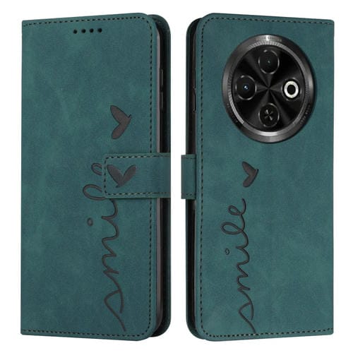 Funda de Piel con Relieve Corazón para Tecno Spark 30C (Verde)