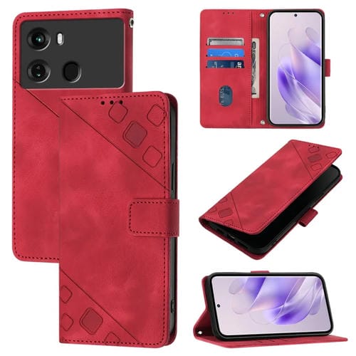 Funda de Piel con Relieve para Teléfono Itel P40 (Roja)
