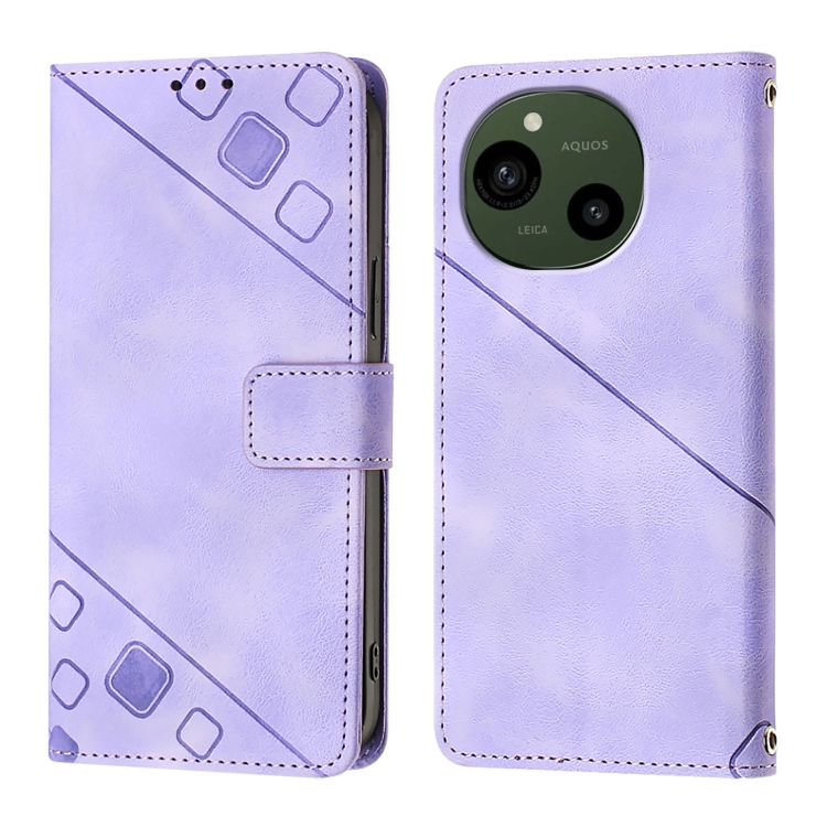Funda de Piel con Relieve para Teléfono Sharp Aquos R9 (Morado Claro)