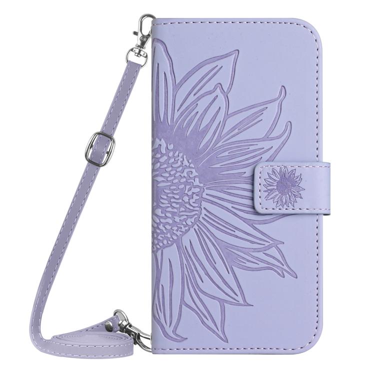 Funda de piel con tapa y cordón para TCL 60 SE / 605, con diseño de girasoles en relieve (morado)