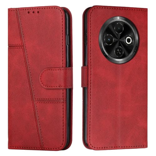 Funda de Piel con Textura de Becerro y Hebilla para Tecno Spark 30C (Roja)