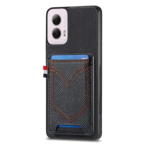 Funda de Piel con Textura Vaquera para Motorola Moto G Power 5G 2024 con Ranura para Tarjetas (Negro)