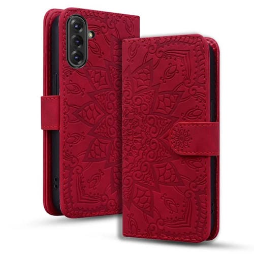 Funda de Piel de Becerro Samsung Galaxy A36/A56 Doble Pliegue Mandala (Roja)