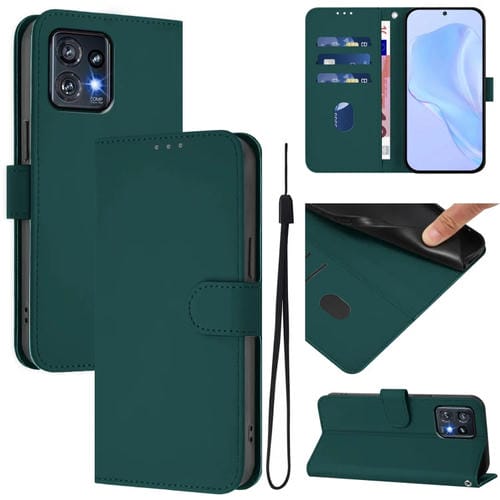 Funda de Piel Sintética con Cordón para Motorola Edge+ 2023 Moto X40 (Verde Oscuro)