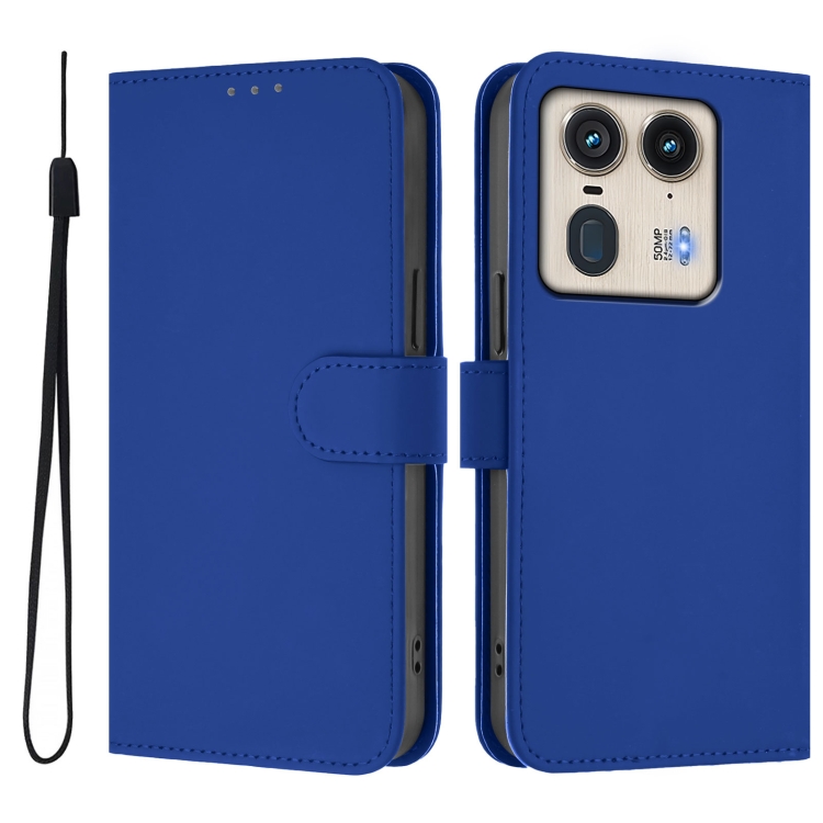 Funda de Piel Sintética con Cordón para Motorola Edge 50 Ultra/X50 Ultra (Azul Oscuro)