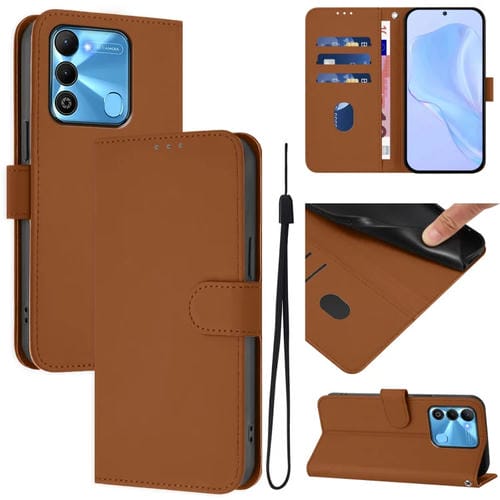 Funda de Piel para Tecno Spark Go 2022/8C con Textura Lisa y Cordón (Marrón)