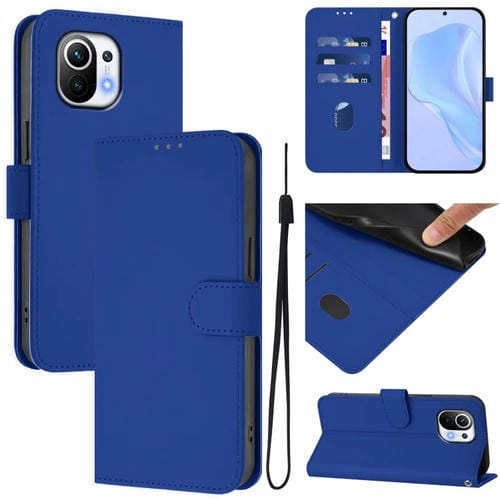 Funda de Piel Sintética con Cordón para Xiaomi Mi 11 (Azul Oscuro)