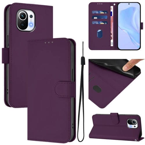 Funda de Piel Sintética con Cordón para Xiaomi Mi 11 (Violeta)