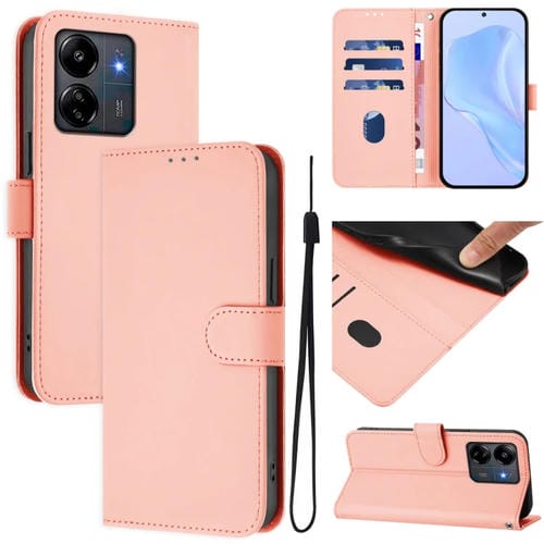 Funda de Piel Sintética con Cordón para Xiaomi Poco C6 Global / M6 5G Global (Rosa)
