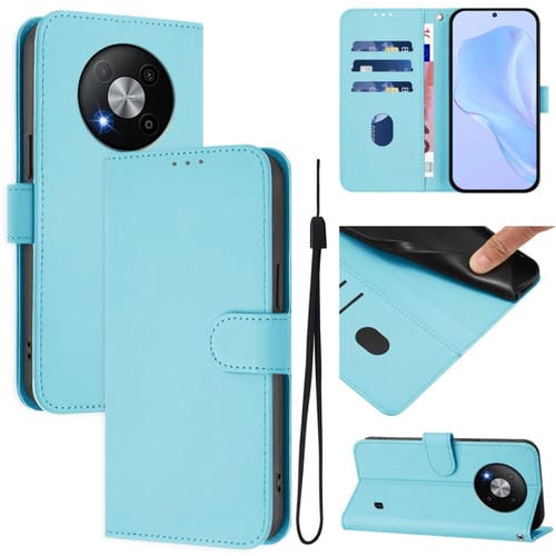 Funda de Piel Sintética con Cordón para ZTE Blade A73 5G (Azul Cielo)