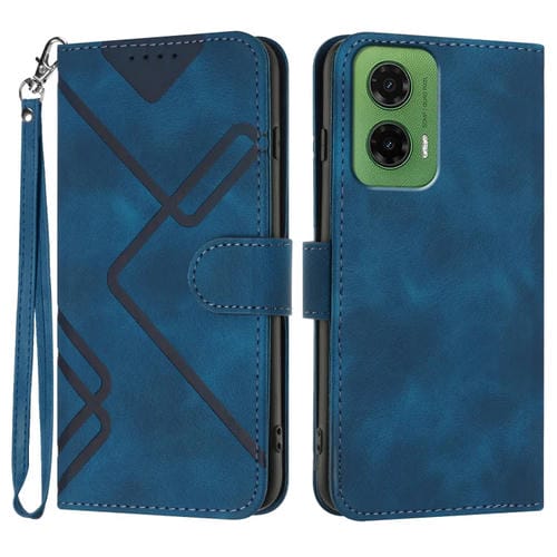 Funda Piel Sintética Motorola Moto G35 Diseño de Líneas (Azul Real)