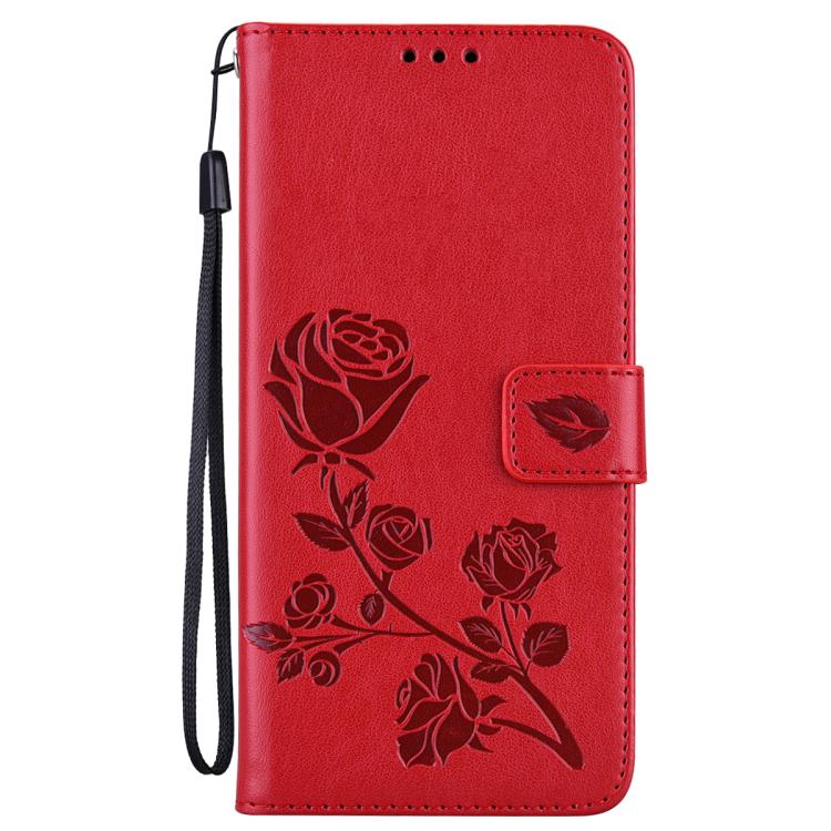 Funda de piel sintética con tapa abatible y relieve rosa para iPhone 17 Pro Max (Roja)