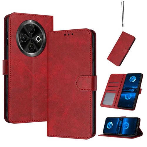Funda de Piel Sintética con Tapa para Tecno Spark 30C (Rojo)