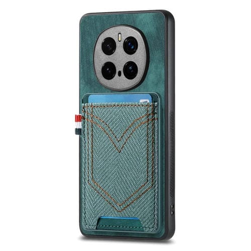 Funda Piel Sintética Textura Vaquera con Ranura para Tarjetas para Honor Magic7 Pro (Verde)