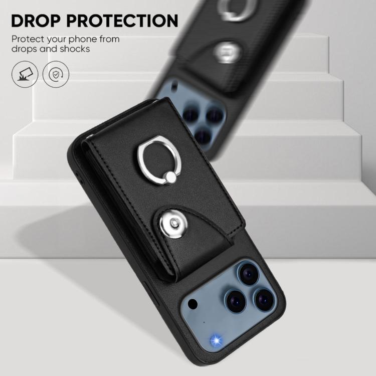 Funda de PU con cordón para iPhone 17 Pro Max, con tarjetero, anillo y soporte (negro)