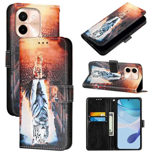 Funda de Teléfono de Cuero con Patrón de Dibujo de Colores y Tejido Liso para Vivo Y28 4G (Gatos y Tigres)
