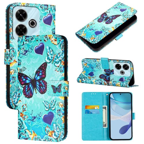 Funda de Teléfono de Cuero de Tejido Liso con Patrón de Dibujo de Colores para Xiaomi Redmi 13 4G (Mariposa Cariñosa)