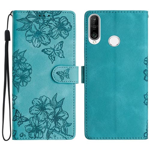 • 1x Funda de Teléfono PU Huawei Y6P con Relieve Mariposa y Flor de Cerezo (Verde)