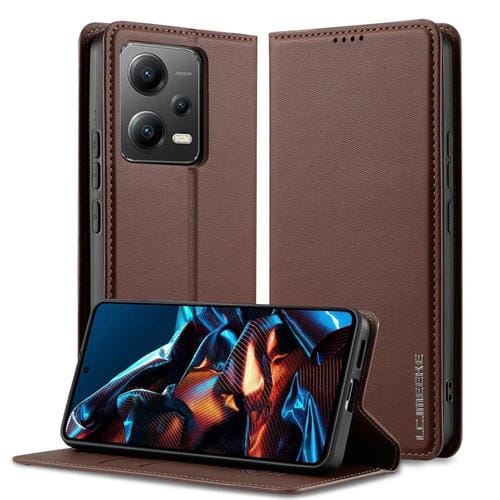 Funda de Teléfono de Pu con Textura Fina Esmerilada para Xiaomi Poco X5 Lc.Imeeke L1 Series (Marrón)