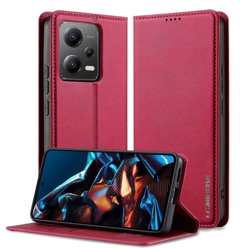 Funda de Teléfono de Pu con Textura Fina Esmerilada para Xiaomi Poco X5 Lc.Imeeke L1 Series (Roja)