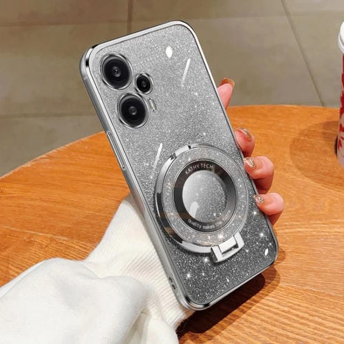 Funda de Teléfono de TPU con Soporte Redondo y Purpurina Degradada Chapada En Turbo para Redmi Note 12 (Plateada)