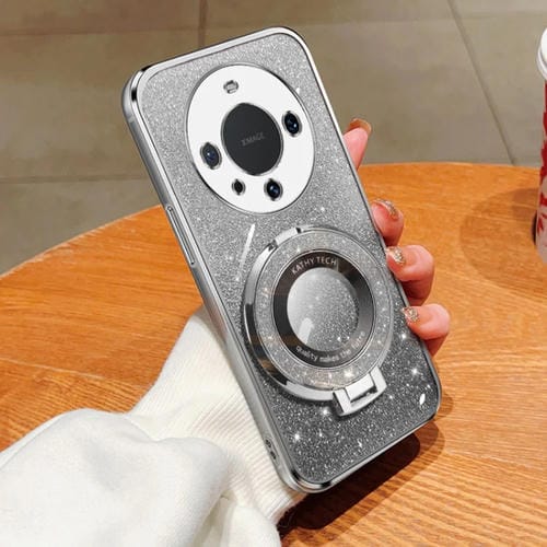 Funda TPU con Soporte Redondo y Purpurina Degradada para Huawei Mate 60 Pro / 60 Pro+ (Plateada)