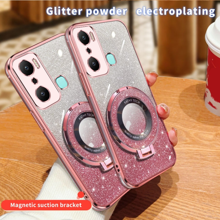 Funda TPU con Soporte Redondo y Purpurina Plateada para Infinix Hot 20 Play (Rosa)